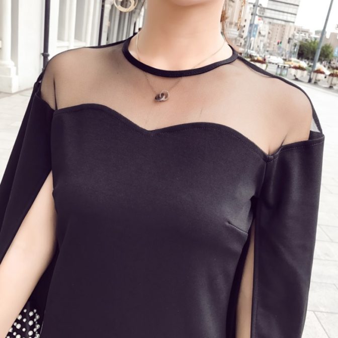 ブラック ケープ風 シースルー パーティー ミニワンピース