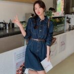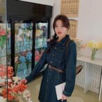 ブルーデニム カーディガンドレス カジュアルウエスト