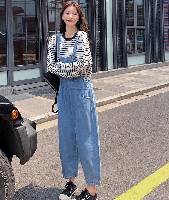 新しい季節にぴったりなこのブルーデニムオーバーオールで、今までにないおしゃれを楽しんでみませんか?自分らしいスタイルを表現できる一枚です。