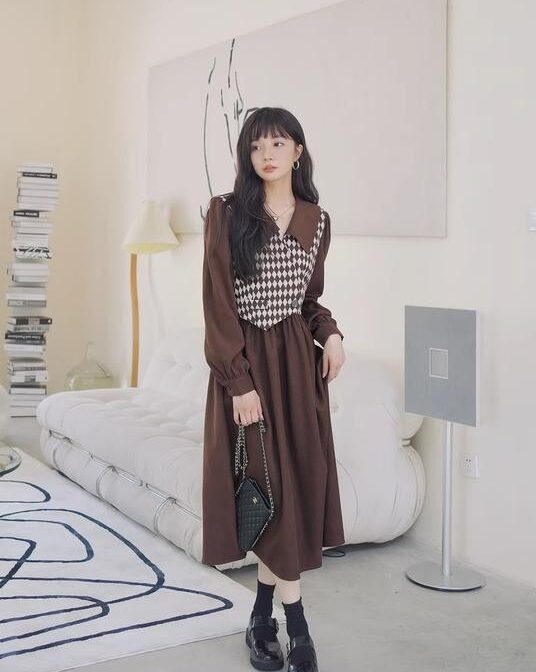 チェック柄とフェイクツーピースが組み合わさった、レトロで可愛い一枚が登場!2024年の春と秋の新しいスタイルを提案する、フレンチウエスト痩身ロングスカートです。ウエスト部分のデザインが腰を細く見せてくれ、女性らしいシルエットを演出します。ドレス感覚で着られる着心地のよさも魅力的です。