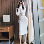 ワンピース スウェット フーディー タイト ミディ カジュアル