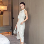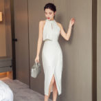 ワンピース ドレス ハイネック ハイウエスト ペンシル タイト