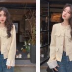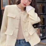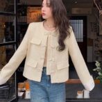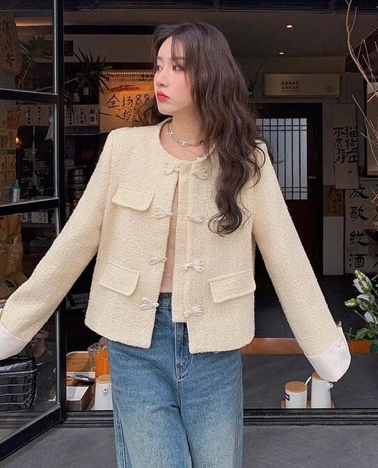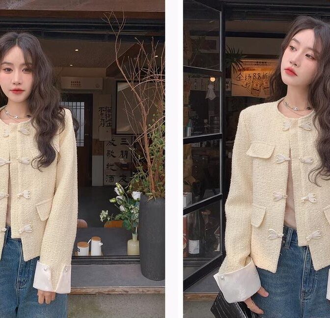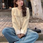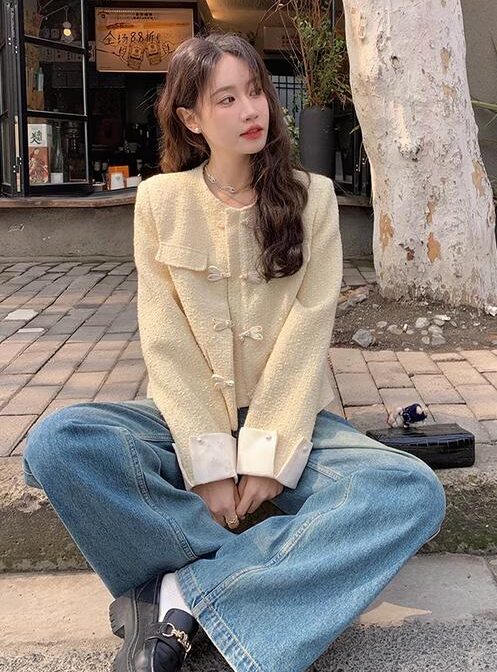 女性用の新しい中国風デザインの黄色い香り高いジャケット!春と秋のファッションにぴったりなカジュアルで優しいスタイルを演出します。美しい小さなトップが気品を醸し出し、周りの視線を引き付けます。