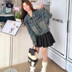 長袖デニムジャケットは、春と秋にぴったりの新しいファッションアイテムです。レトロなデザインで、カジュアルなスタイリングにぴったり。ジャケットの裾や袖口にはかわいいフリルディテールが施されており、一枚で着るだけでおしゃれ感がアップします。