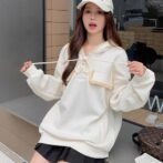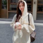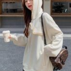 長袖フード付きスウェットシャツローエッジプルオーバートップ