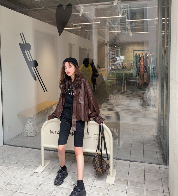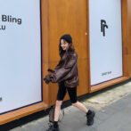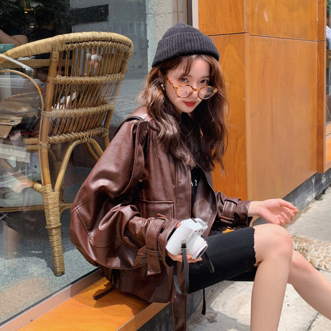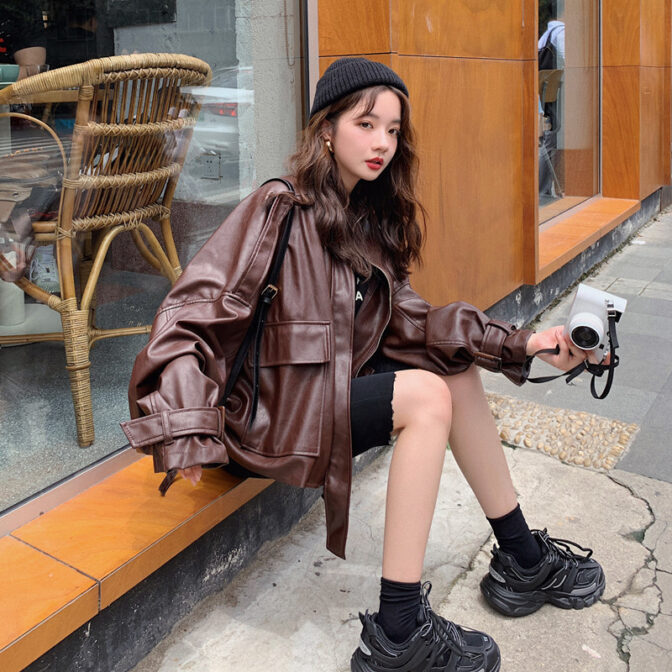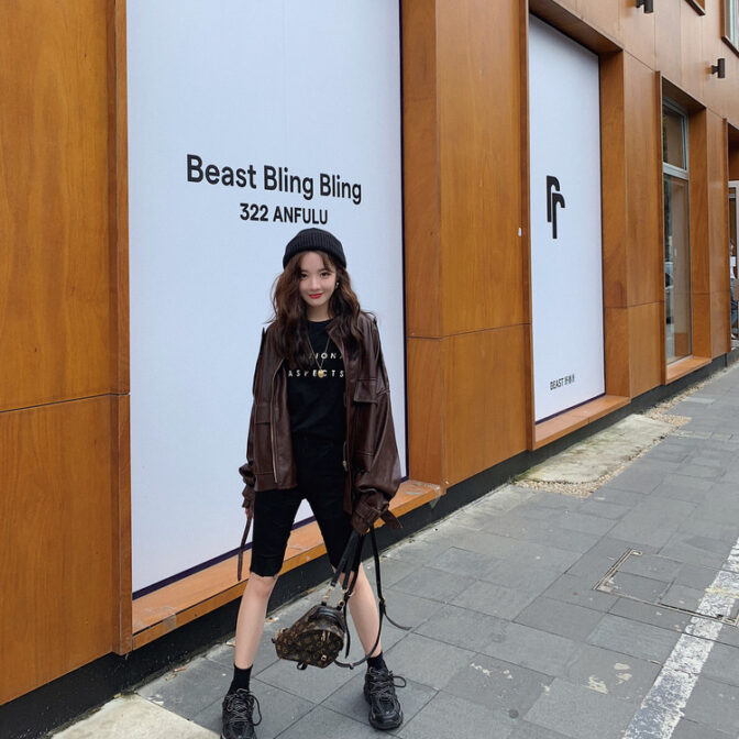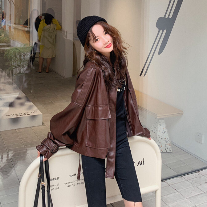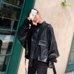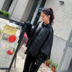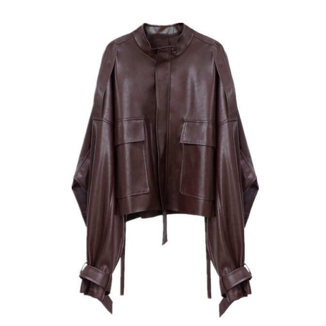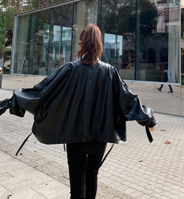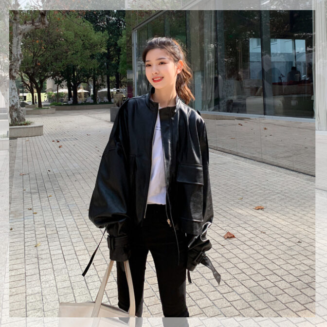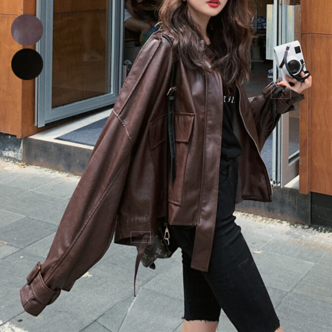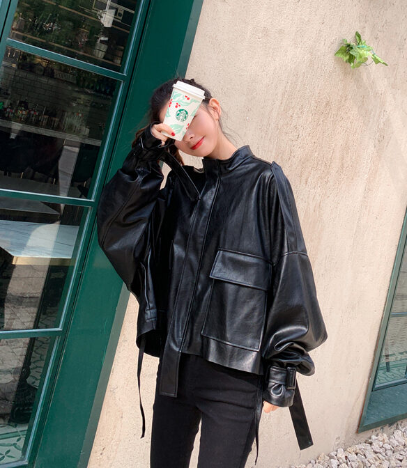 エコレザー ジャケット ビッグシルエット バットスリーブ 甘辛
