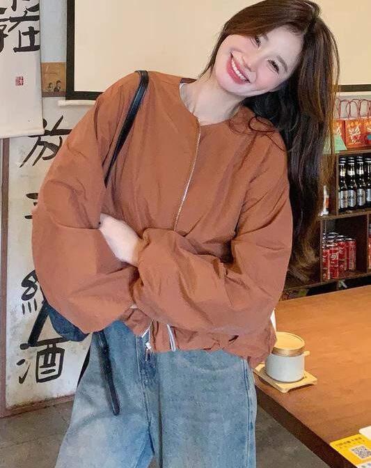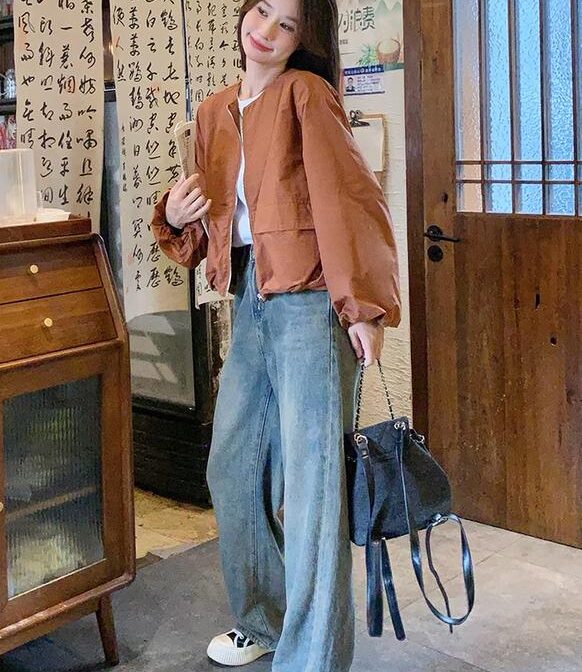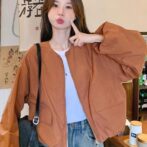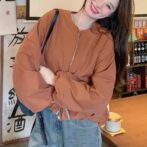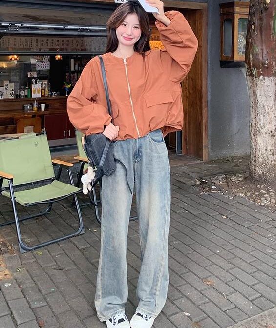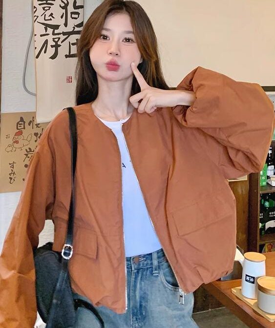 オレンジワークジャケット スタイルファッショナブル ショートトップ