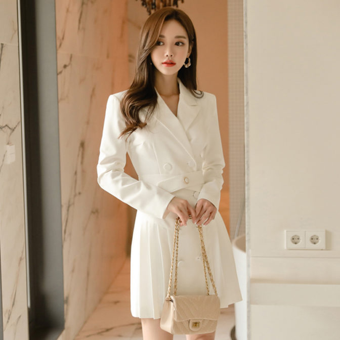 ジャケットワンピース 膝上 ホワイト 大人かわいい ミニワンピ