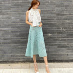 セットアップ シフォンブラウス レース ロングスカート Aライン