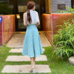 きれいなAラインのフレアスカートにはポケットが2つ付いています。