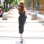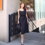 シンプルな中に細めのストラップやツイストのディテールが入り、オシャレなコーディネートになっています。