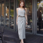 セットアップ スリップ風トップ ツイスト カジュアル 週末 2色