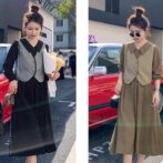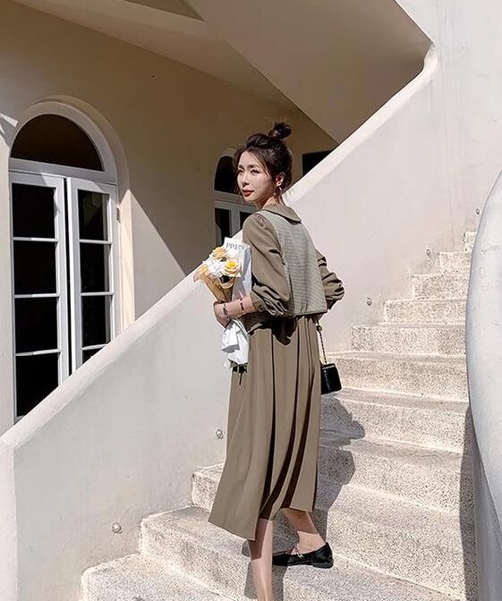 2024 春と秋の新作長袖ドレス女性のツーピースシリーズハイエンドフレンチチョッキスーツミッドレングスは、エレガントでモダンなスタイルを叶える一着です。トップスはハイエンドなフレンチチョッキ、スカートはミッドレングスで、女性らしいシルエットを演出します。上品な塩シリーズの素材を使用し、高級感と着心地の良さを両立させました。