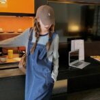 デニムスプライシングフェイクツーピースサスペンダー
