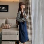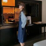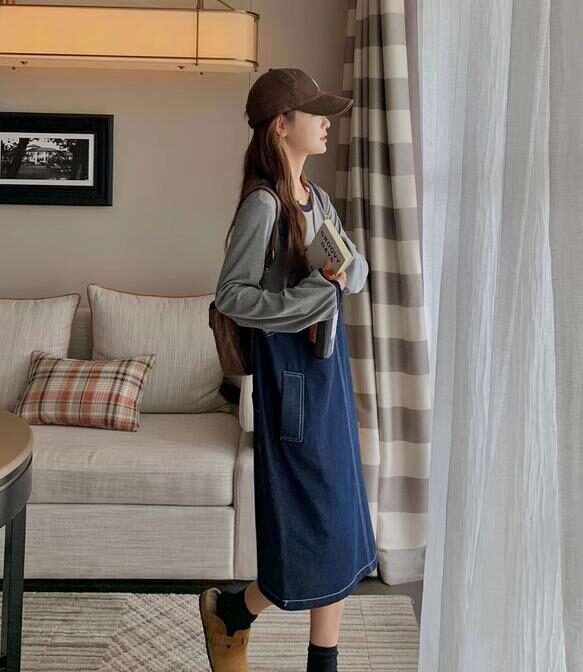 デニム素材なのでカジュアルながらも大人っぽい印象を与え、サスペンダーのアクセントがさりげないおしゃれ感をプラス。カジュアルながらも洗練されたスタイルを手軽に演出できます。一枚でコーディネートが完成するので、忙しい朝でも着こなしの工夫が不要です。