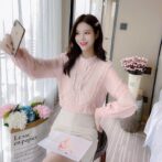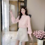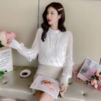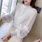 トップス シフォン 刺繍 レース パール付 ブラウス