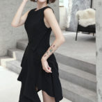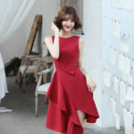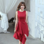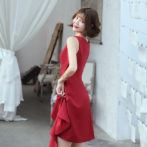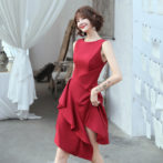 ドレス ミディ アシメトリー スリット フレア パーティー 二次会