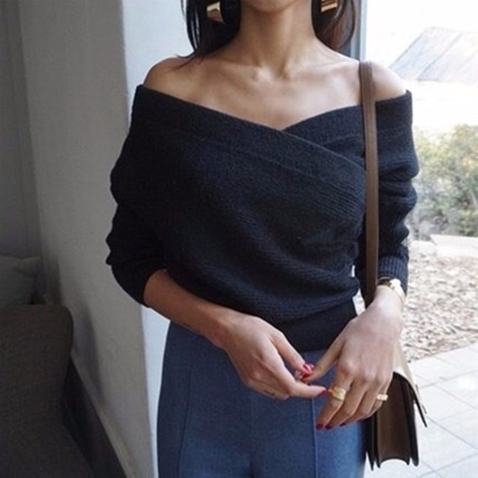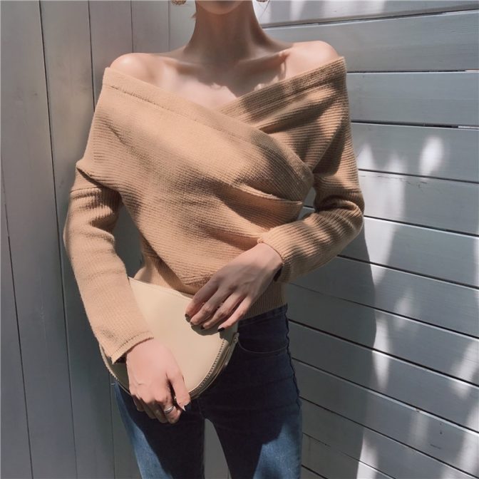 ニット セーター カシュクール オフショル 2ウェイ カジュアル
