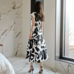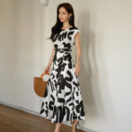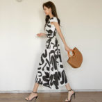 バイカラー 上品 フェミニン ロング フレア ベルト付 ワンピース