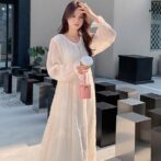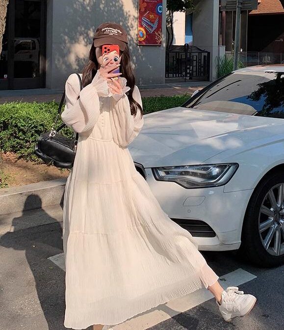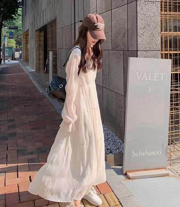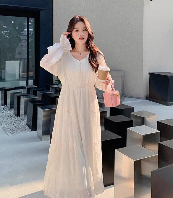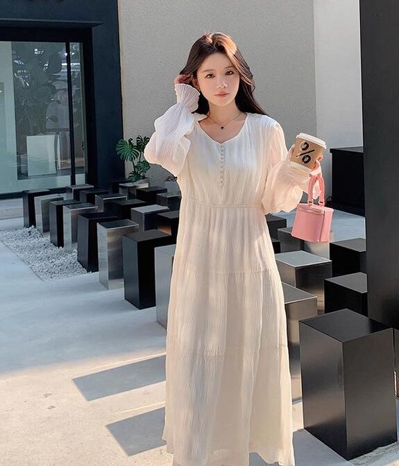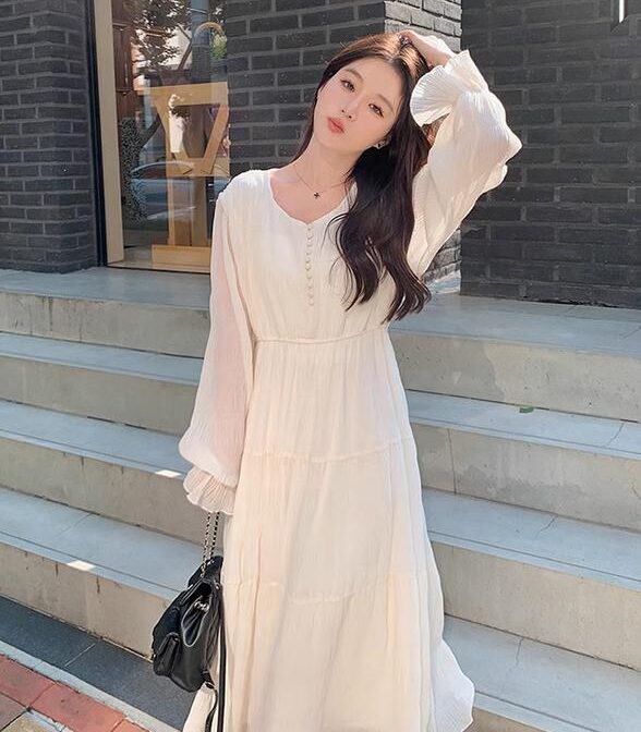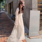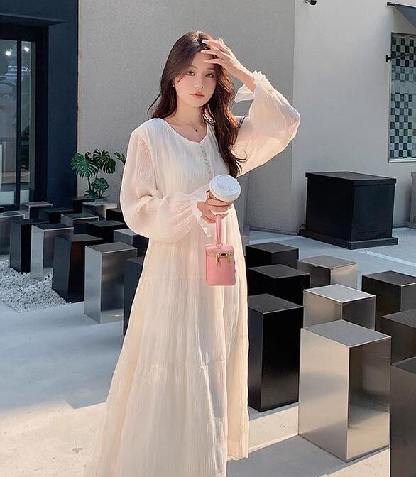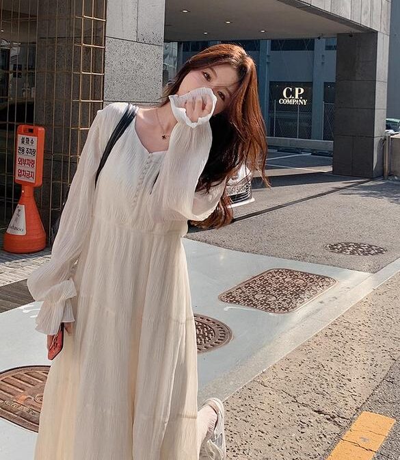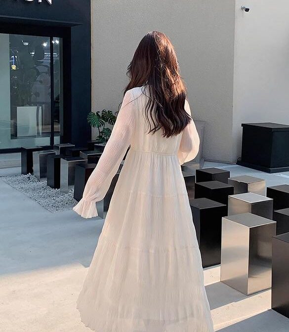 新しい優しいスタイルの、白いプリーツドレスが新登場しました。女性のためのミッドレングスで、ハイエンドのフレンチスタイルを体現する一着です。長袖のデザインで、上品でエレガントな印象を演出するスーパーフェアリースカートは、どんなシーンでもおしゃれに着こなせます。