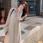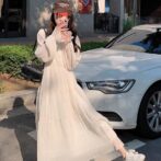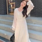 プリーツドレス ミッドレングスハイエンドフレンチスタイル長袖スーパーフェアリースカート