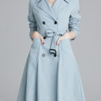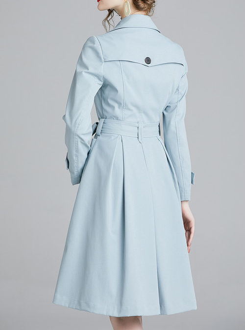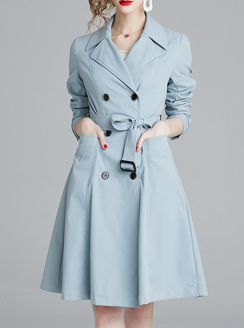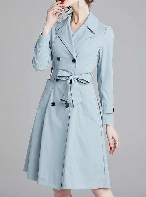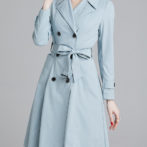 ミントグリーン膝丈のトレンチコートミドル丈ダブルブレストジャケット