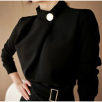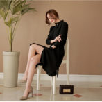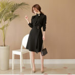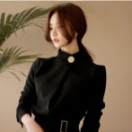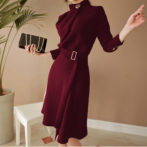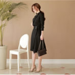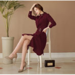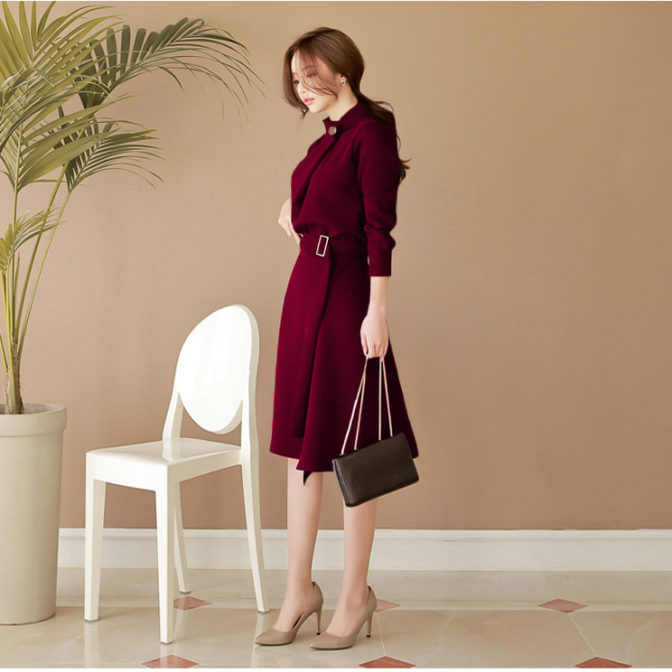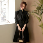 レトロ シック ボタン ハイネック ベルト フレア ワンピース