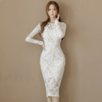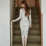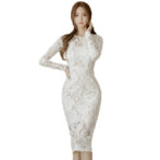 レース タイト ワンピース 上品 ミドル丈 フェミニン