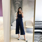 ハイウエストの切替なので、スッキリと足長の印象に。
