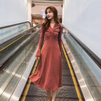 ワンピース ツイスト フレア袖 膝下 フレア 通勤 お出掛け