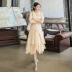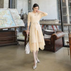 ワンピース リブニット シフォン チュール ロング レイヤード