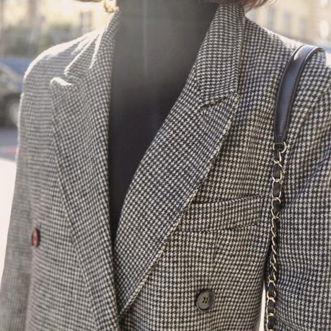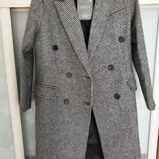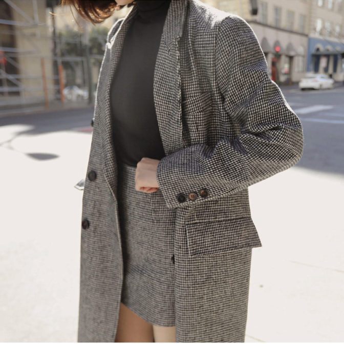 大人高級感千鳥格ラシャロングコート+スカートセットアップ