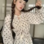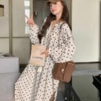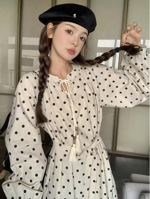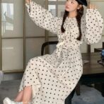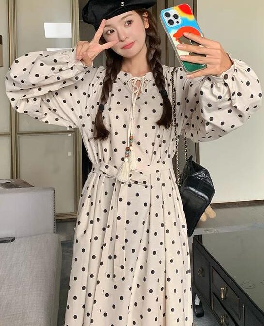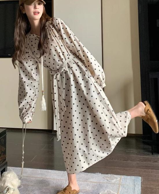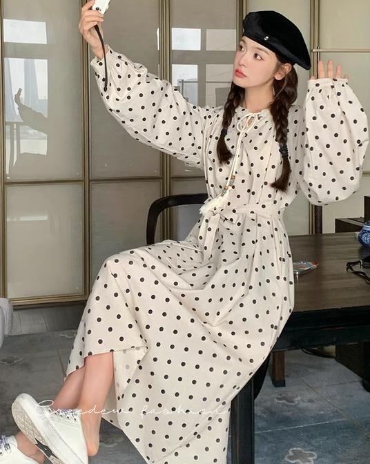 この白い長袖水玉ドレスロングスカートが、あなたの特別な日や日常を彩りますように。自信を持ってお勧めする逸品です。