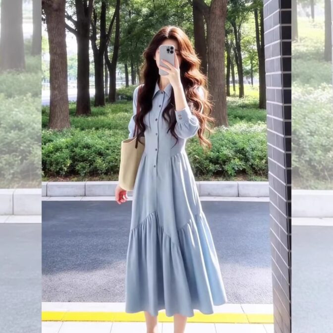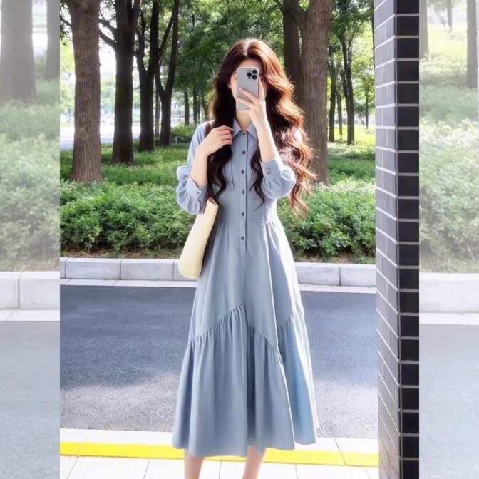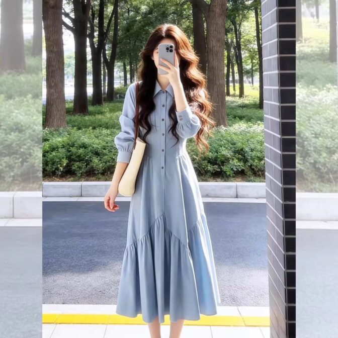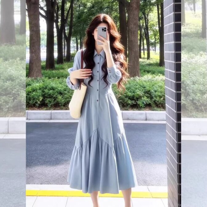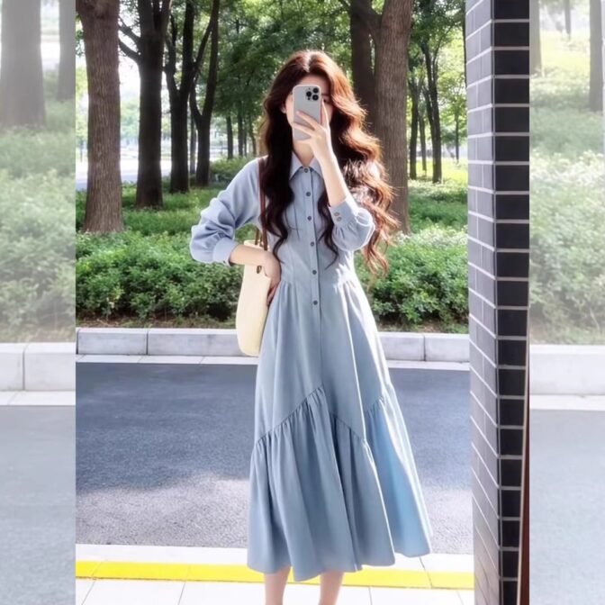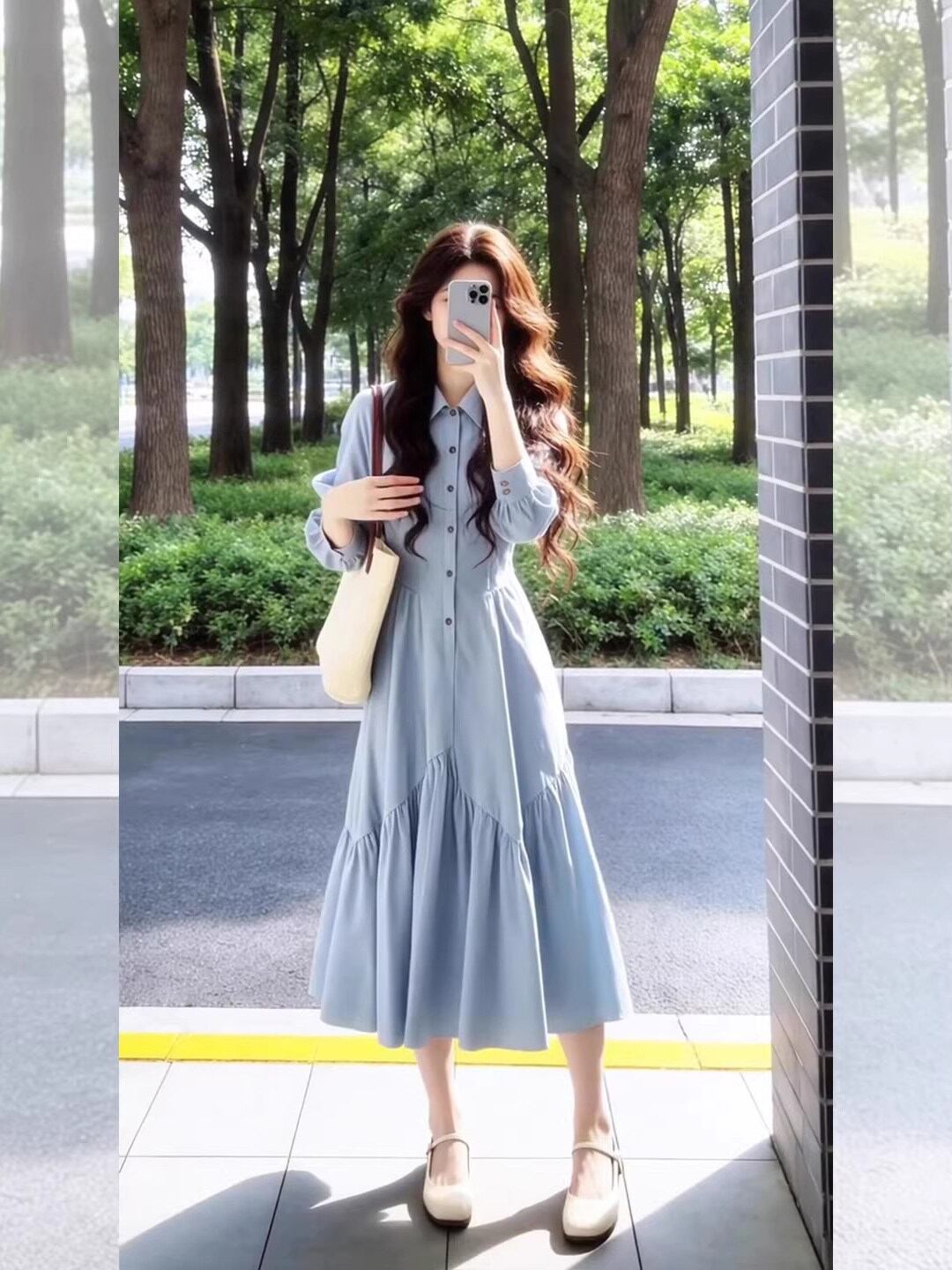 春の心地よい風にぴったりな、韓国カレッジスタイルブルー長袖シャツドレスが新登場しました!このトレンド感あふれるデザインは、特別なお出かけからカジュアルな日常まで幅広く活躍し、あなたのファッションに新たな彩りを加えます。