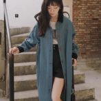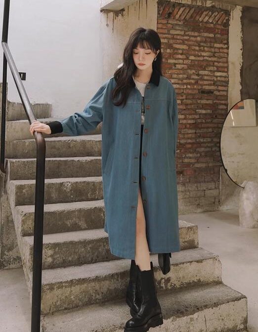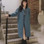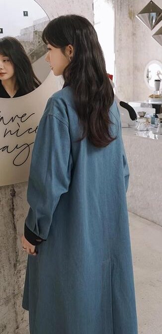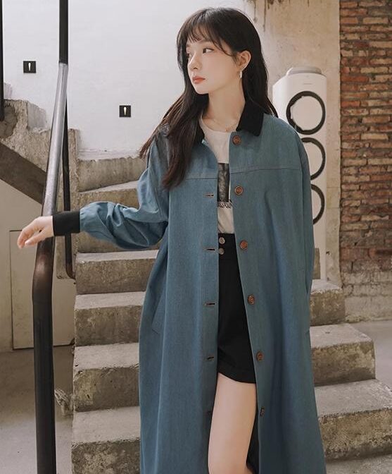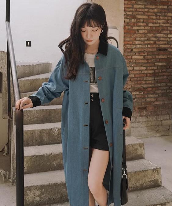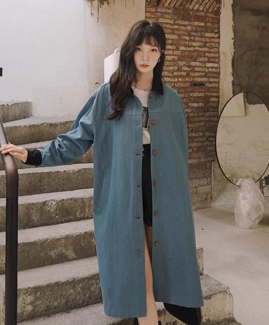 韓国スタイルデニムウインドブレーカーレディースミドル丈