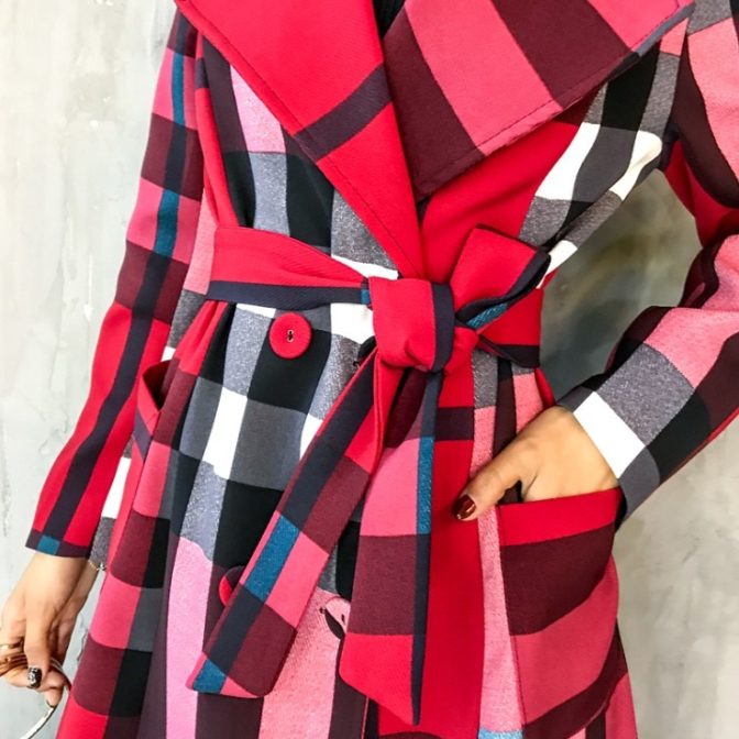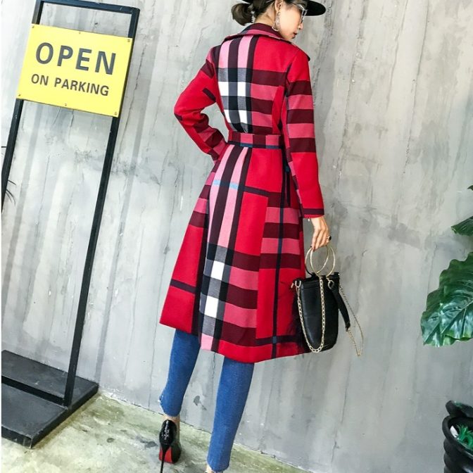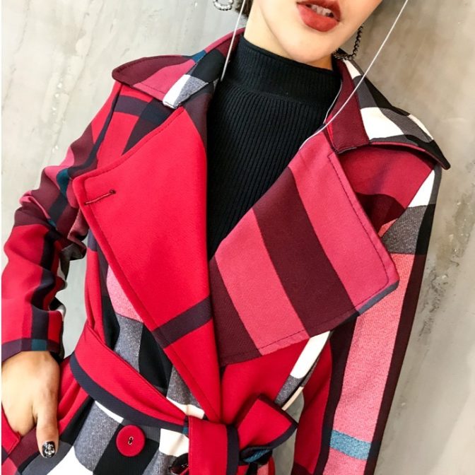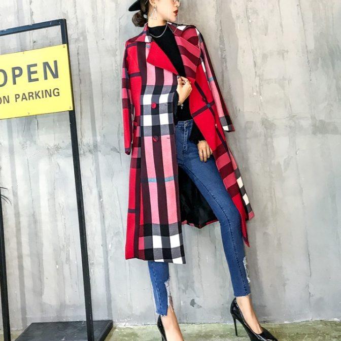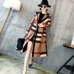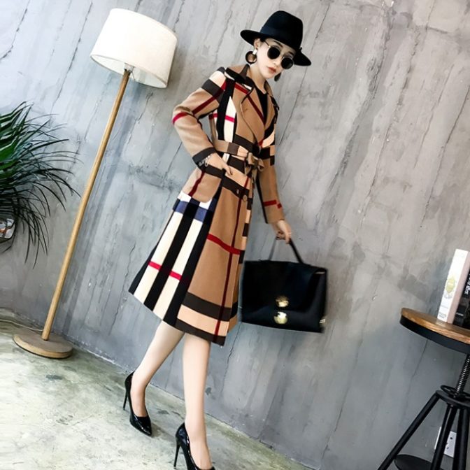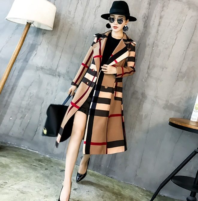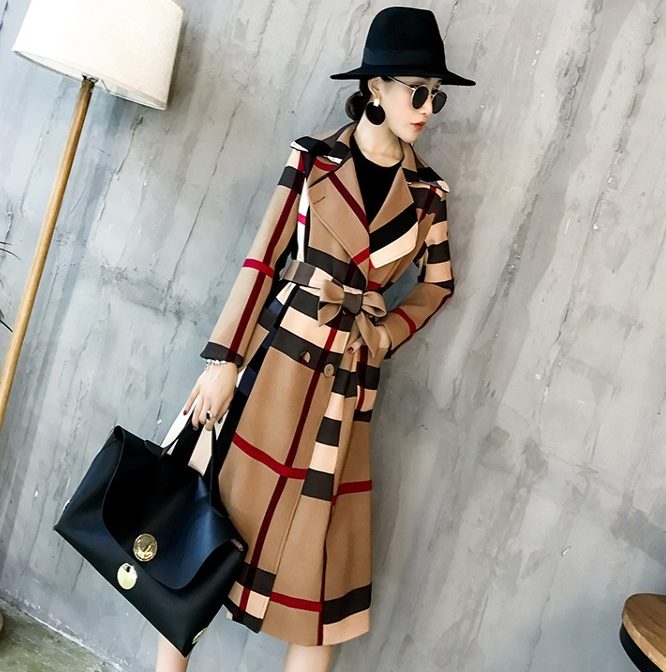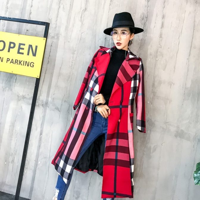 2色大人気 オシャレ 配色チェック柄 ラシャ スリムロングコート